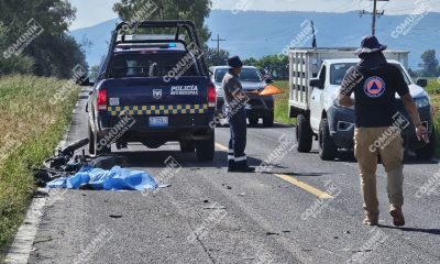 Pénjamo, Guanajuato.- Un motociclista de aproximadamente 40 años de edad perdió la vida tras sufrir un accidente sobre la carretera estatal Pénjamo-Pastor Ortíz, entre las comunidades...