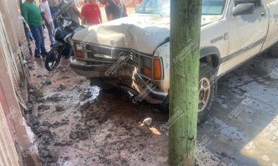 Pénjamo, Guanajuato.- Una camioneta pick Up de color blanco que bajó por la calle Primero de Mayo aparentemente son frenos, detuvo su marcha de manera violenta...