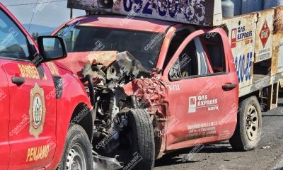 Pénjamo, Guanajuato.- Dos lesionados leves y cuantiosas pérdidas materiales, fue el saldo que dejó el choque frontal entre un camión de pasajeros y una camioneta repartidora...
