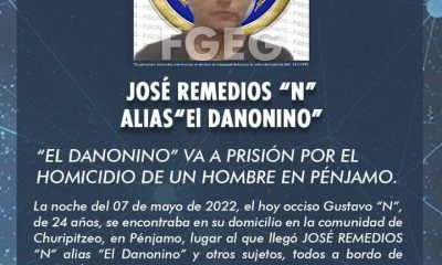 Pénjamo, Guanajuato.- José Remedios alias «El Danonino», fue detenido por Agentes de Investigación Criminal por el homicidio de un hombre en la comunidad de Churipitzeo, hechos...
