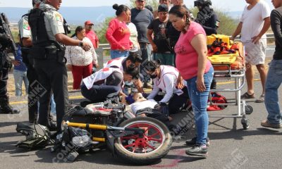Pénjamo, Guanajuato.- El conductor de una motocicleta resultó herido al ser arrollado por una camioneta de transporte de personal, en el entronque de la carretera estatal...