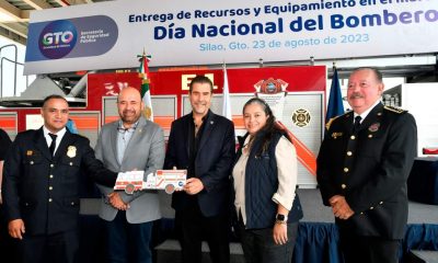 Pénjamo, Guanajuato.- La Presidenta Municipal Yozajamby Molina Balver, acompañada por los integrantes del Ayuntamiento, encabezaron este viernes el evento de donación de un camión de bomberos...