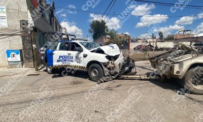 Irapuato, Gto.- Una patrulla de la Secretaría de Seguridad Ciudadana de la de Irapuato, chocó con un camión repartidor de una empresa de mensajería, mientras perseguía...