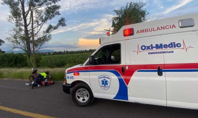 Pénjamo, Guanajuato.- Un motociclista de 38 años de edad resultó herido de consideración tras sufrir un derrape, mientras circulaba por la Prolongación Miguel Hidalgo, cerca de...