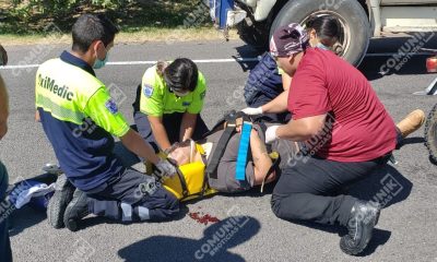 Pénjamo, Guanajuato.- Un motociclista resultó herido de consideración tras sufrir un accidente frente a la central de autobuses de Pénjamo, sobre la carretera federal 1110. El...