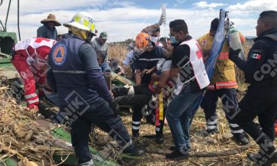 Pénjamo, Guanajuato.- Personal de los cuerpos de emergencias, rescataron a un Jornalero que quedó atrapado en las navajas de una trilladora, entre las comunidades Palo Alto...