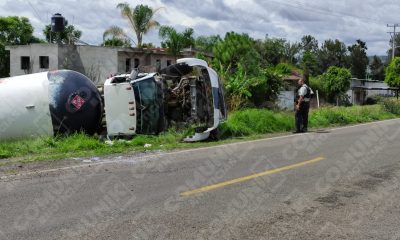 Irapuato, Gto.- Una pipa de doble remolque que transportaba más de 30 mil litros de agua, volcó sobre la Avenida de los Insurgentes tras ser impactada...