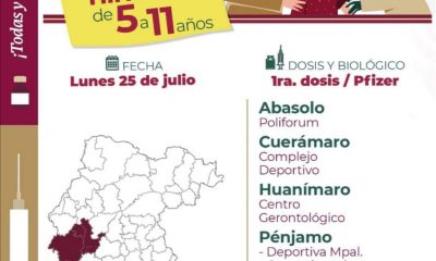 Pénjamo, Guanajuato.- Este lunes iniciará la aplicación de la primer dosis de la vacuna de Pfizer, para los menores de 5 a 11 años de edad,...