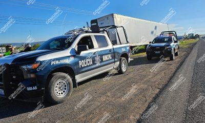 Pénjamo, Guanajuato.- Elementos de la Policía Municipal de Pénjamo realizaron el aseguramiento de un trailer con reporte de robo, donde rescataron al chófer que venía privado...