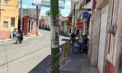 Pénjamo, Gto.- Un poste de madera propiedad de Teléfonos de México (TELMEX) está en riesgo de caer, pues está desprendido de la base y detenido solamente...
