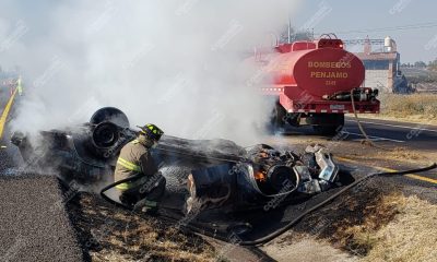 Pénjamo, Guanajuato.- Dos adultos mayores con lesiones menores y cuantiosas perdidas materiales, fue el saldo que dejó la volcadura de un vehículo cerca de la comunidad...