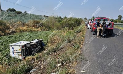 Pénjamo, Guanajuato.- Un repartidor de la empresa Danone resultó ileso tras salirse de la carretera y volcarse, los hechos ocurrieron a un costado de la carretera...