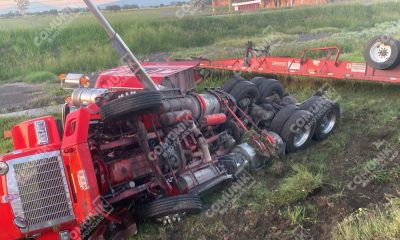 Pénjamo, Guanajuato.- El conductor de un camión de carga, estuvo a punto de morir en un accidente tras volcar la tarde de este viernes sobre la...